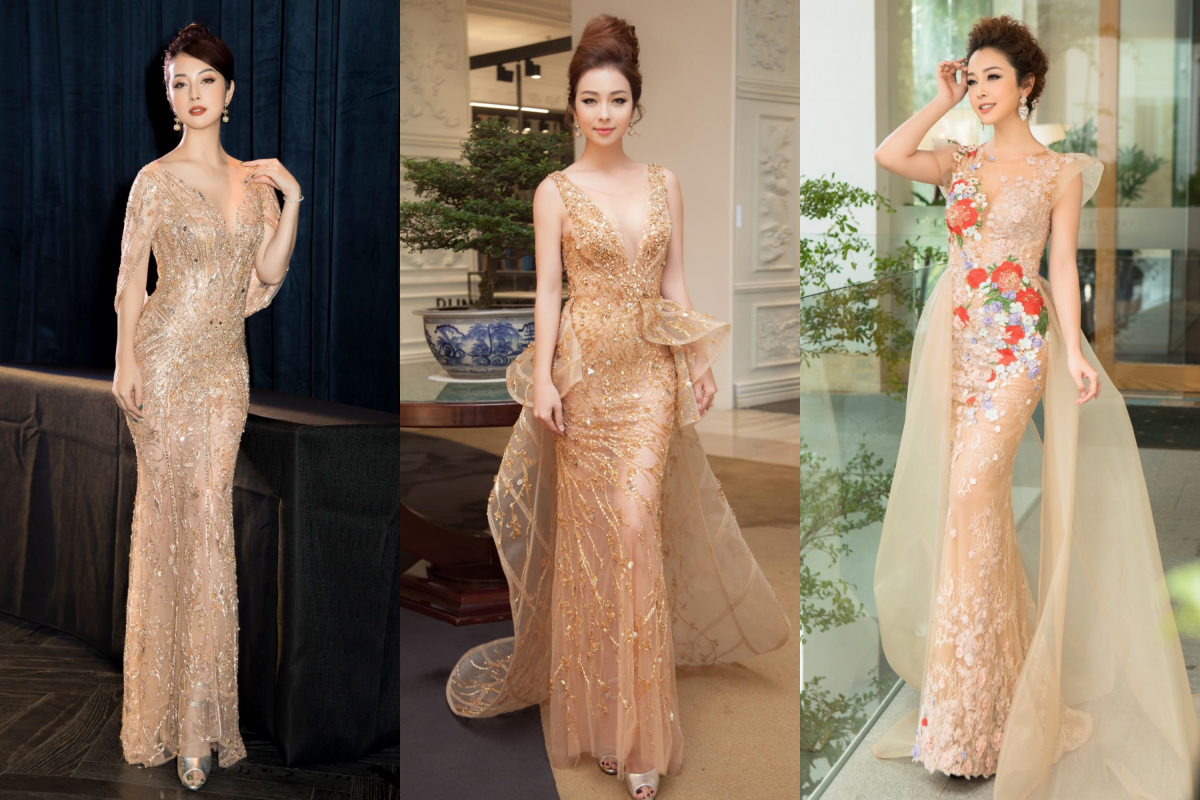 Người đẹp nhiều lần dự sự kiện với trang phục sequin, xẻ ngực, đính kết hoa và pha lê... Ảnh: Tom Nguyễn