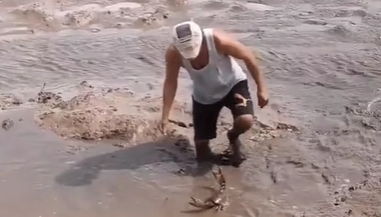 Trước đó, mạng xã hội cũng từng xôn xao trước một đoạn clip bắt cua tương tự. Trông rất "gay cấn" nhưng tới lúc bắt được rồi thì ai cũng trầm trồ.