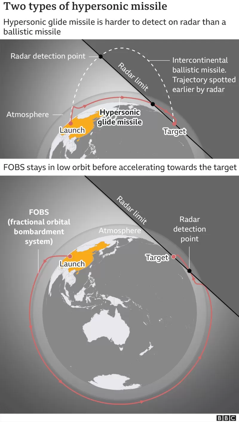 Nhưng có một khu vực mà phương Tây đang tụt hậu một cách nguy hiểm sau Nga và Trung Quốc. Đó là tên lửa siêu thanh mà có thể bay ở bất cứ đâu với tốc độ từ 5 đến 27 lần tốc độ âm thanh và mang theo đầu đạn hạt nhân hoặc đầu đạn thường.
