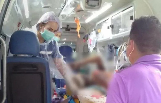 Người cha nhanh chóng được đưa đi bệnh viện cấp cứu với vết bỏng nặng