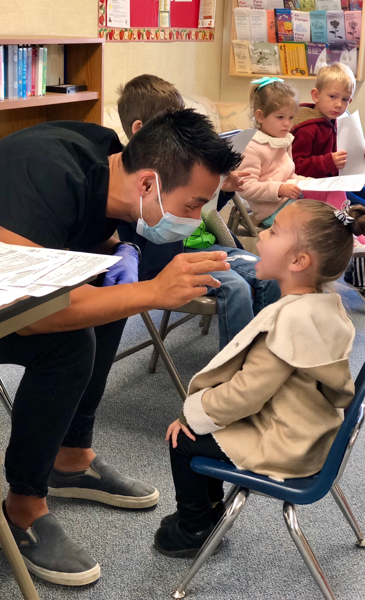Nha Sĩ Andrew Võ khám răng cho trẻ em. (Hình: Andrew Võ cung cấp)