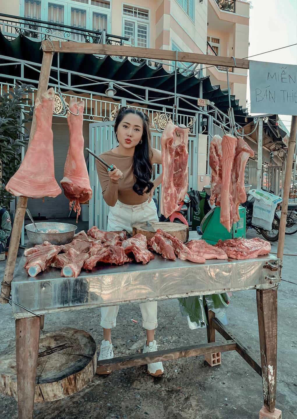 Tường Vi đăng tải hình ảnh đứng bán thịt, khoe khéo sắc vóc trẻ trung, quyến rũ ở tuổi 32.