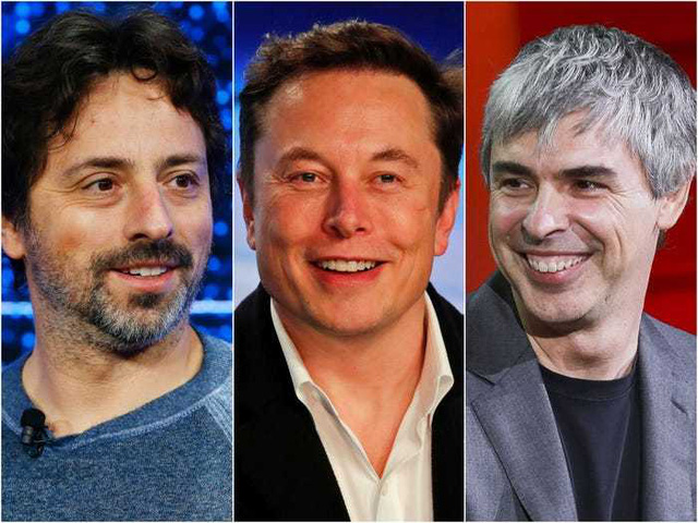 Từ trái qua: Sergey Brin, Elon Musk và Larry Page