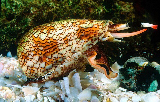 Một loài sinh vật biển khác mà chúng ta phải cảnh giác đó chính là ốc nón. Bạn có thể dễ dàng nhầm lẫn nó với một số loài ốc khác và nó cực kỳ nguy hiểm. Chỉ cần vài giọt nọc độc của nó có thể giết chết 20 người trưởng thành. Nếu không có huyết thanh, người bị chích gần như chắc chắn sẽ tử vong sau vài phút. Do nọc độc hoạt động nhanh, ốc nón c̣n được gọi là ốc thuốc lá, nghĩa là nếu một con chích bạn, bạn có đủ thời gian để hút một điếu thuốc trước khi chết.3. Rắn Mamba đen