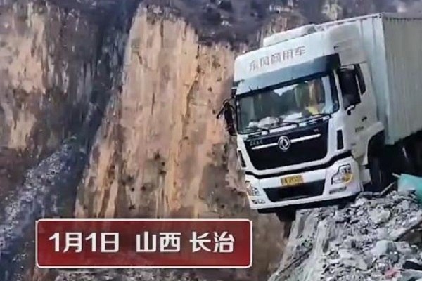 Thót tim cảnh xe tải treo trên dốc núi suốt 3 ngày. Vụ việc trên xảy ra ở một con đường nằm trên dốc núi cheo leo ở thị xã Trường Trị thuộc tỉnh Sơn Tây, Trung Quốc.