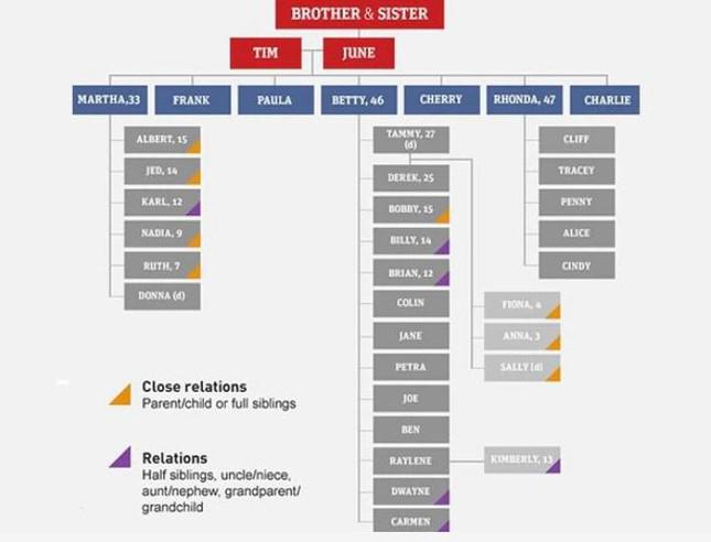 Cây phả hệ gia đình Tim-June Colt. Đồ họa: News.