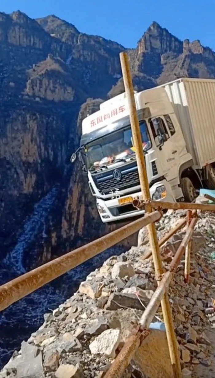 Ngày 1/1, một hướng dẫn viên du lịch địa phương họ Wu đã đăng đoạn clip ghi lại hiện trường vụ tai nạn bên rìa một ngọn núi ở phía bắc Trung Quốc. Trong clip, một chiếc xe chở hàng lao ra khỏi con đường hẹp, tông gãy hàng rào phòng hộ và treo lơ lửng bên vách đá cao 100 mét. Lúc đó, ông Wu đang điều khiển xe đi phía sau.