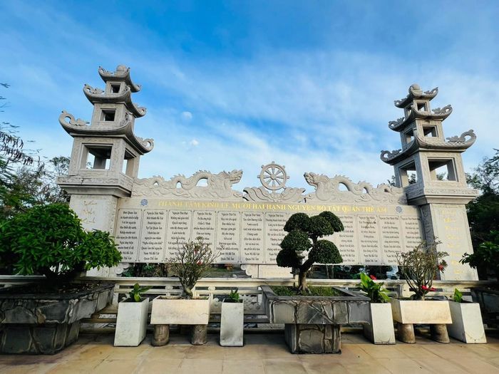 Ghé thăm chùa, du khách sẽ phải choáng ngợp trước những công trình kiến trúc trang nghiêm, bề thế của ngôi chùa độc đáo này như: Lâm viên Đại Bi Chú với 84 tôn tượng hóa thân của Bồ Tát Quán Thế Âm trong cảnh giới Đại Bi Chú trang nghiêm và thanh tịnh, công trình khắc kinh trên đá nguyên khối nặng hàng trăm tấn.... và độc đáo nhất là bức tượng Phật Quán Thế Âm Bồ Tát (Tứ diện Ngũ phương) bằng đá trắng nguyên khối (có chiều cao 19m, nặng 480 tấn) đã được Kỷ lục Guinness Việt Nam công nhận.