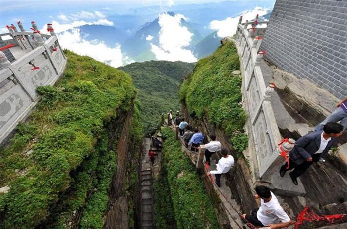 Để đến được chốn thần tiên này, trước tiên du khách phải leo hơn 8.000 bậc thang, sau đó có thể chiêm ngưỡng những dòng chữ khắc cổ từ triều đại nhà Minh (1368-1644) và nhà Thanh (1644-1911), thể hiện sự tôn kính ngọn núi thánh của người dân địa phương đã đến đây từ nhiều thế kỷ trước.