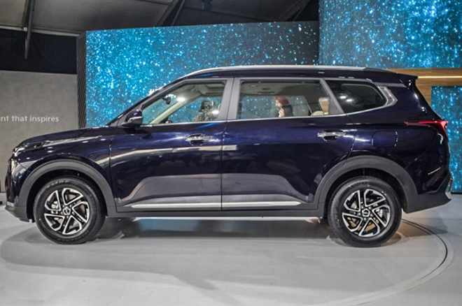 Xe được trang bị bộ mâm hợp kim 5 chấu 16 inch, Carens mới có đường roofline phẳng hơn để tối đa khoảng trống đầu đến trần xe, trong khi cửa kính phía sau có vẻ lớn hơn một chút để làm nổi bật các đặc điểm của dòng xe minivan.