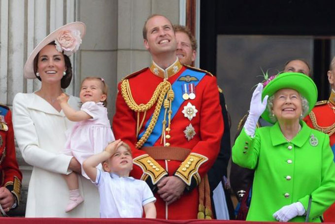 Nữ hoàng và gia đình William - Kate trong lễ sinh nhật bà hồi tháng 6/2017. Ảnh: Instagram The Royal Family