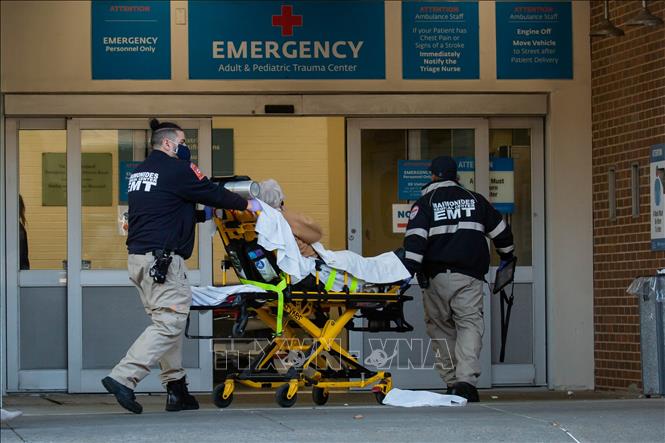 Nhân viên y tế chuyển bệnh nhân COVID-19 tới trung tâm y tế tại New York, Mỹ, ngày 14/12/2021. Ảnh: THX/TTXVN