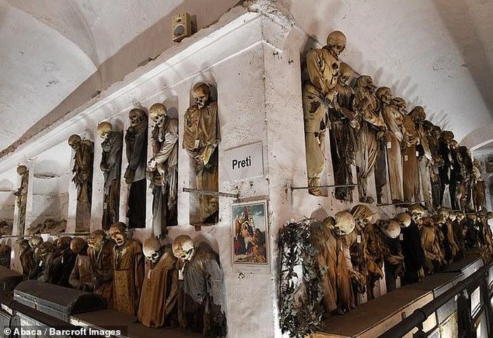 Theo Daily Mail, hầm mộ Capuchin nằm ở ở Sicily, miền nam nước Ý, nơi chứa hơn 1.280 bộ xương, trong đó có 163 xác ướp trẻ em. Hầm mộ vốn mở cửa cho công chúng tham quan và là nơi thu hút khách du lịch thích trải nghiệm cảm giác mạnh, ưa thích những thứ rùng rợn, đáng sợ.