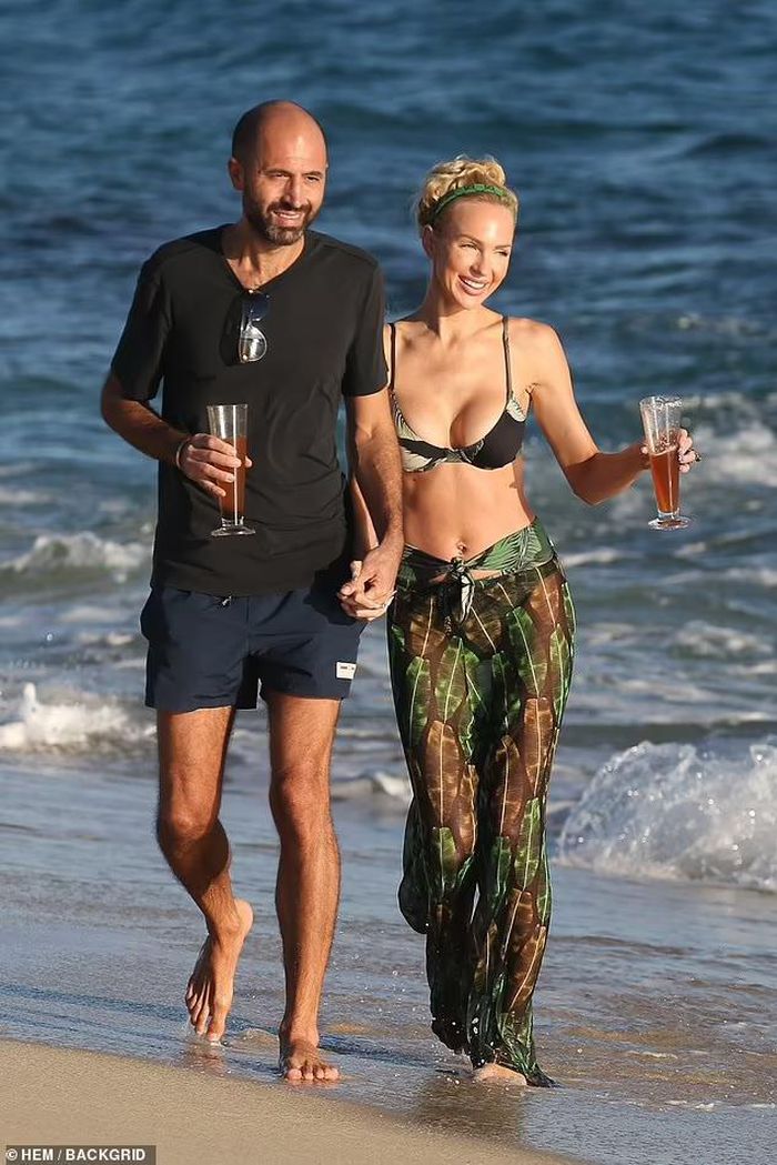 Người đẹp và chồng là triệu phú công nghệ Christian Richard khóa môi nồng nàn trên bãi biển.