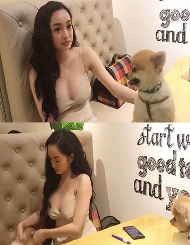 Cô nàng gây chú ý khi diện váy cúp ngực để lộ cặp tuyết lê căng tràn.
