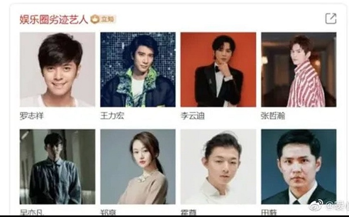 Những người có tên trong danh sách hầu hết đều có hành vi phạm pháp, gây tác động xấu cho xã hội. Ví như, Ngô Diệc Phàm đang bị cảnh sát giam giữ sau khi bị cáo buộc hiếp dâm. Nghệ sĩ dương cầm Trung Quốc Lý Vân Địch bị bắt vì gạ gẫm gái mại dâm…