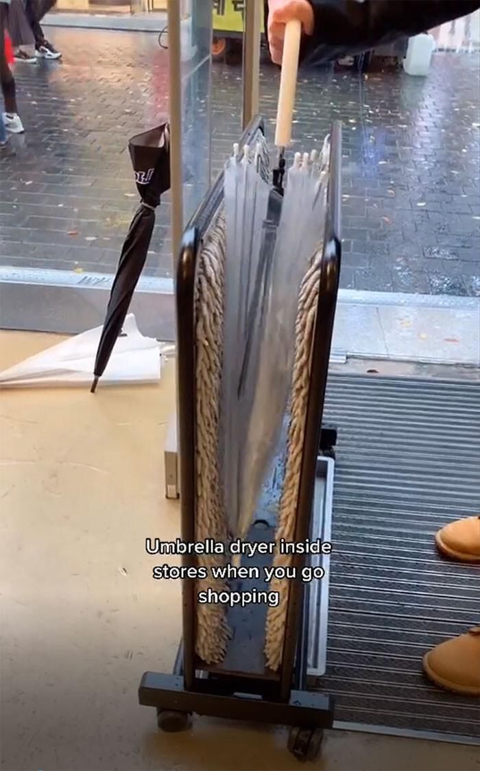 Đây là một thiết bị hữu ích mỗi khi trời mưa tại các cửa hàng vì khi những chiếc ô của khách hàng quá ướt, có thể làm bẩn sàn hoặc làm ướt ngược lại người mang.