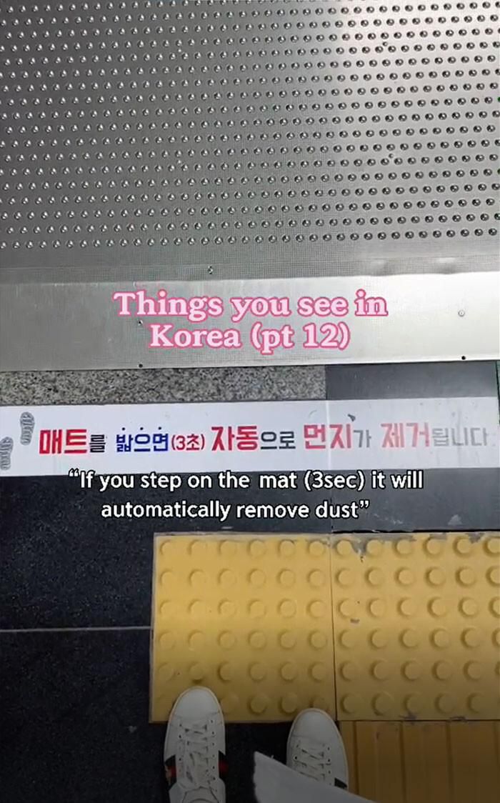 Thoạt nghe có vẻ không cần thiết, song ở Hàn Quốc có thiết bị như thế - thảm phụi bụi cho đế giày. Bạn nghĩ sao về ý tưởng này.