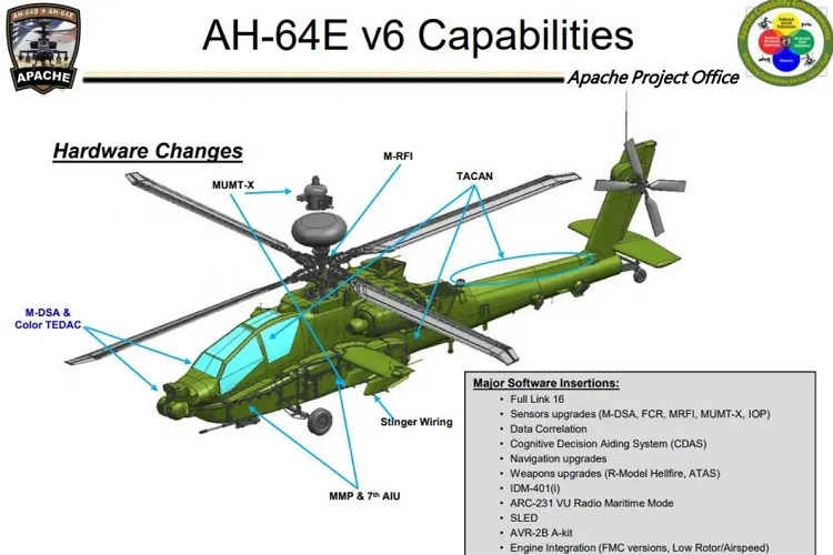 Sơ đồ các thiết bị được lắp trên AH-64E V6. Ảnh: The Drive