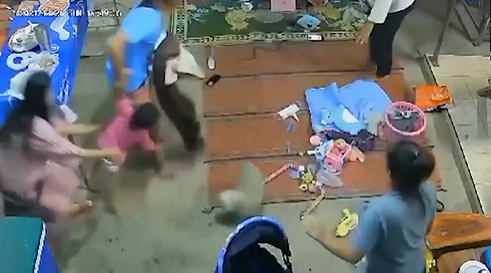Cảnh tượng gây sốc này được ghi lại tại một gia đình. Trong clip, một con rắn đang bò từ bên ngoài vào nhà rồi trườn qua tấm chiếu trải dưới đất. Phát hiện ra sự việc, cả gia đình tỏ ra hoảng hốt, lập tức đứng dậy rồi bế bé gái lên khỏi mặt đất trước khi bị rắn cắn trúng.