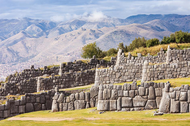 Sacsayhuamán, Peru: Trên dãy Andes của Peru, phía bắc Cusco nơi từng là thủ đô của Đế chế Inca vẫn còn lại những tàn tích Sacsayhuamán bí ẩn. Một hình ghép từ những tảng đá khổng lồ, được cắt chính xác, tạo nên những bức tường không có vữa của pháo đài Inca.