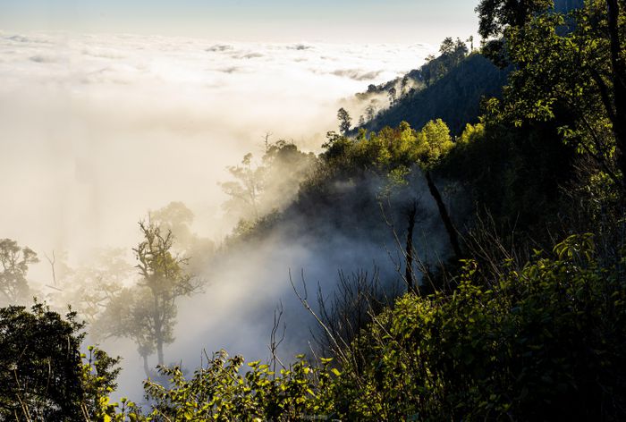 Mây luồn qua những tán cây
