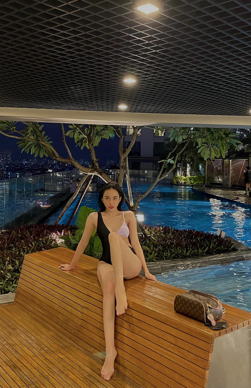 Thiên Nga "The Face" diện bikini khoe vóc dáng nóng bỏng. Bộ đồ tắm 2 mảnh dù không phô trương quá nhiều da thịt Thiên Nga, nhưng vẫn tôn lên tối đa từng đường cong cơ thể và giúp cô toát lên vẻ sang chảnh