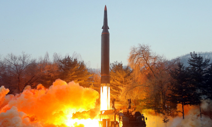 Một tên lửa mang đầu đạn siêu vượt âm trong ảnh được Triều Tiên công bố hôm 5/1. Ảnh: KCNA.