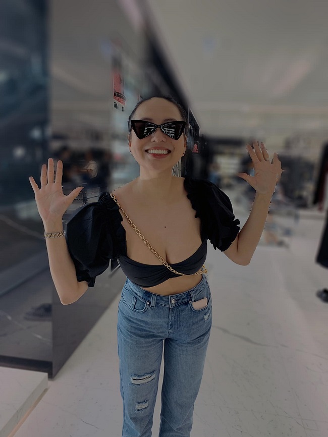 Cựu hot girl chuộng phong cách thời trang gợi cảm nhưng không kém phần trẻ trung.