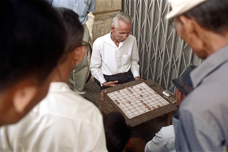Hình ảnh đời thường với hai cụ già chơi cờ tướng