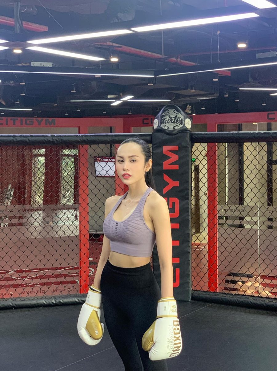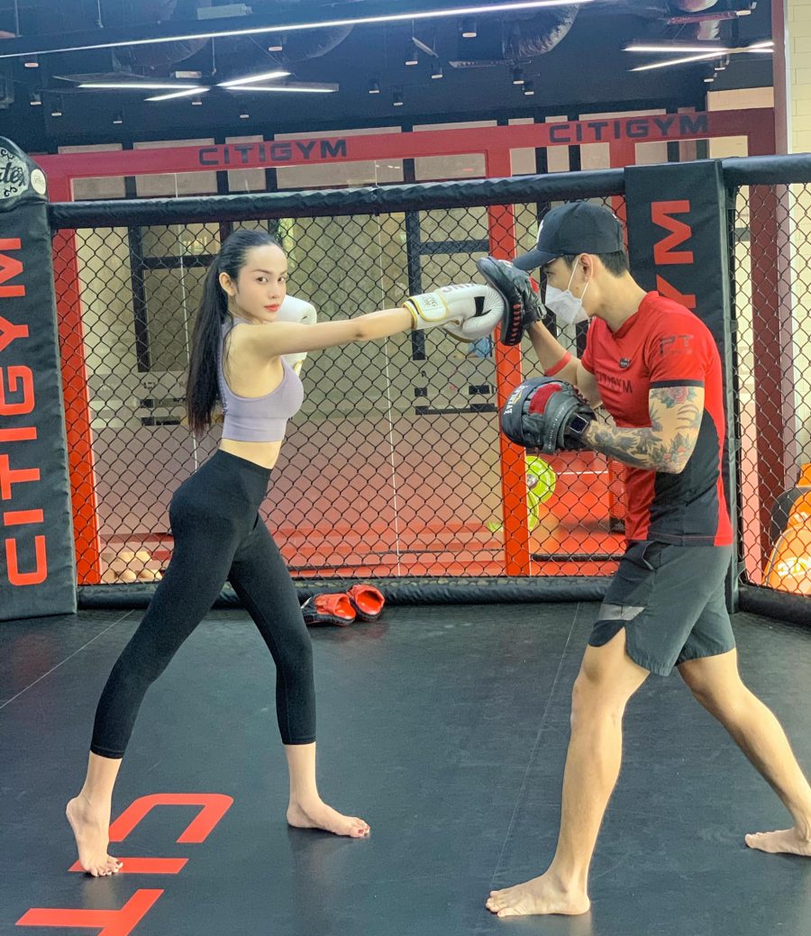 Ngoài tập gym, cô còn tập thêm boxing để "độ" dáng.