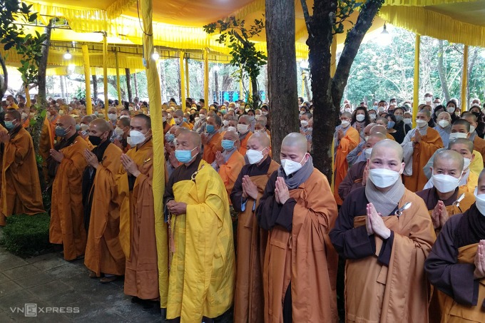 Hàng nghìn tăng ni, phật tử tham dự lễ nhập liệm thiền sư Thích Nhất Hạnh. Ảnh: Võ Thạnh