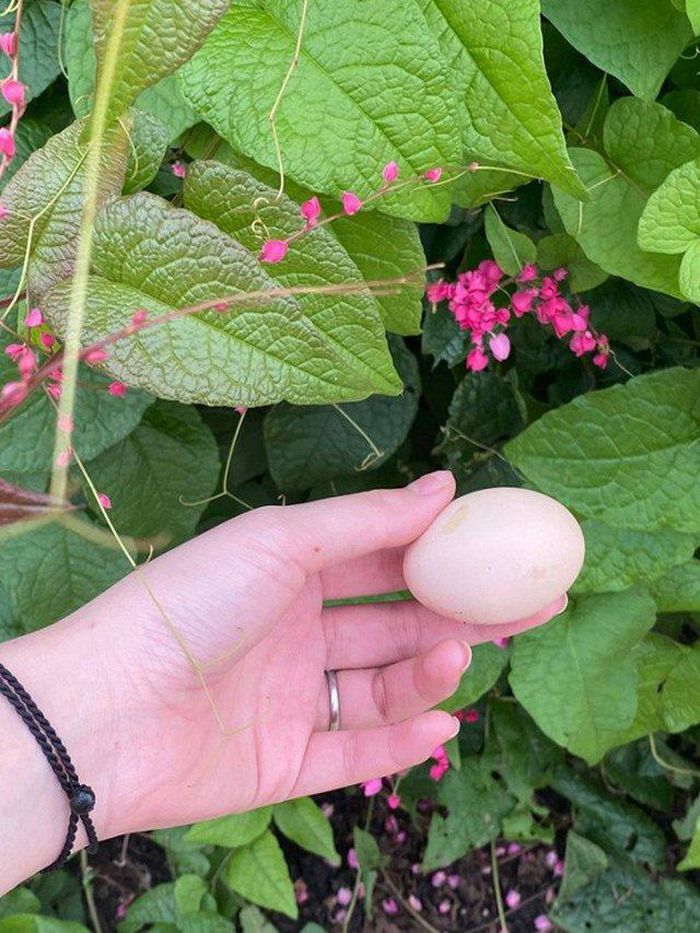 Khu vườn trong biệt thự có nhiều loại rau, trái cây, thậm chí còn nuôi được gà trong vườn. Ảnh: FBNV