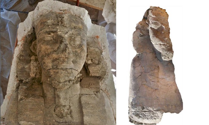 Các nhà khoa học công bố phát hiện hai bức tượng nhân sư khổng lồ trong quá trình khôi phục ngôi đền cổ của pharaoh Amenhotep III ở Luxor.