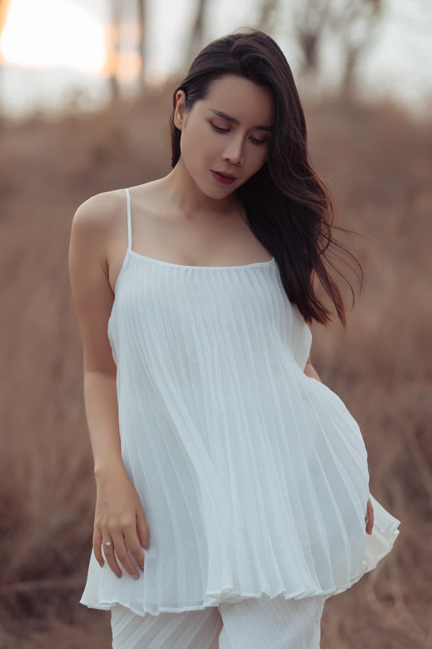 Old  Default Bà xã Hồ Hoài Anh chăm mặc váy hai dây để khoe vòng 1 đẹp như báu vật