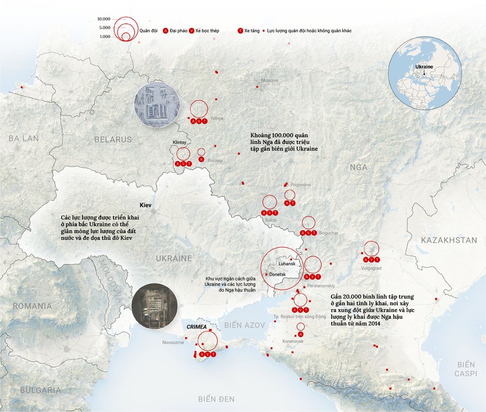 Bố trí lực lượng của Nga xung quanh Ukraine khiến Kiev và phương Tây lo lắng. Đồ họa: New York Times.
