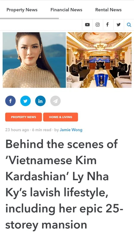 Trang tin có trụ sở tại Hồng Kông ví người đẹp là "Kim Kardashian của Việt Nam" và chia sẻ về cuộc sống sang chảnh, hào nhoáng của nữ đại gia Vbiz.