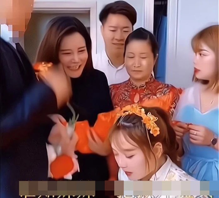 Trong giây phút trọng đại ấy, gia đình, bạn bè của hai bên đồng thời im lặng chờ đợi khoảnh khắc thiêng liêng, bản thân cô dâu cũng vô cùng hồi hộp. Chẳng ngờ đúng lúc ấy, em gái của chú rể đột nhiên cười phá lên rồi vươn tay giật khăn trùm của chị dâu xuống.