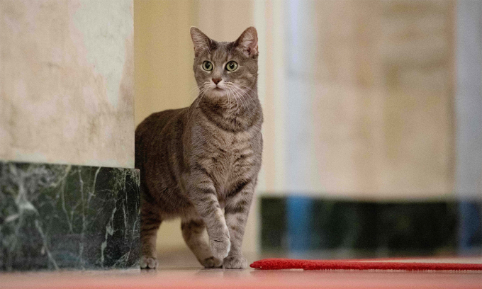 Mèo Willow đi trên hành lang trong Nhà Trắng ngày 27/1. Ảnh: White House.