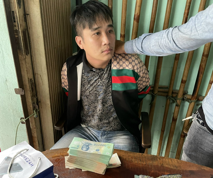 Long bị cảnh sát bắt khi mang tiền giả đi tiêu thụ. Ảnh: Tường Vân