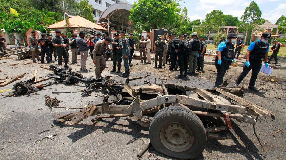 Hiện trường một vụ đánh bom ở tỉnh Yala vào năm 2020. Ảnh: Reuters.