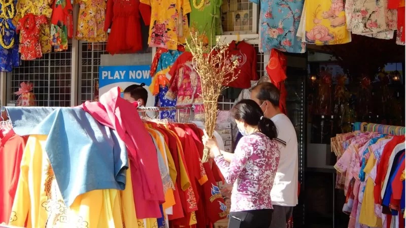 Bà bán hàng gọi là kiểu áo dài cách tân mà theo cách nhìn của tôi nó có gì đó hơi giống kiểu áo của người Hoa. Nhưng không còn lựa chọn nào khác nên cũng mua cho cháu. Nói giá 35 đô, tôi trả 25 đô, cô chủ đồng ý ngay. Cuối năm cô mong bán cho mau hết hàng, hay tôi đã mua hớ?