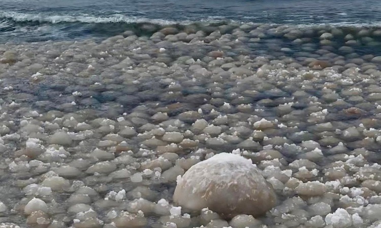 Những quả cầu băng khổng lồ xuất hiện dọc bờ hồ Michigan, một số có bề rộng lên tới hơn 90 cm.