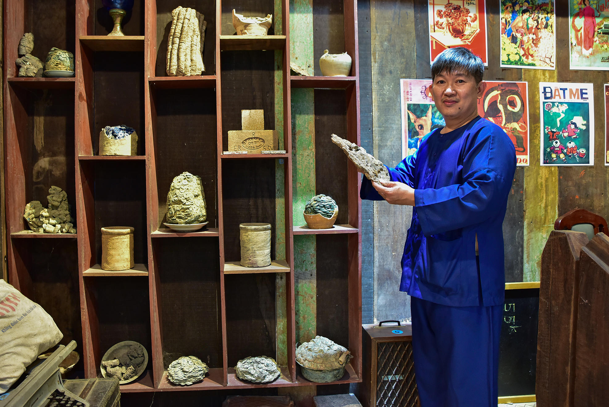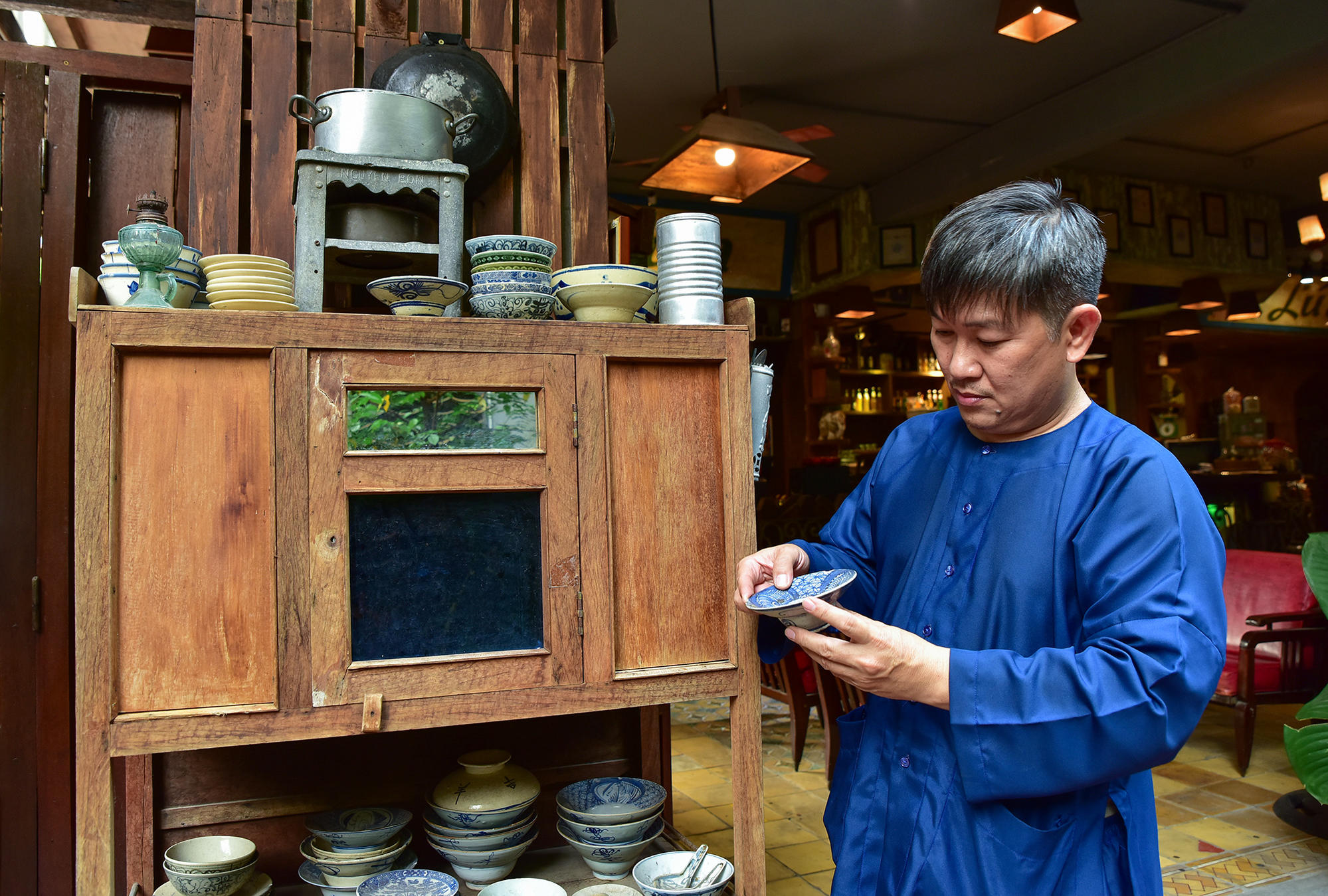 Hơn 3 năm qua, ông Huỳnh Minh Hiệp (49 tuổi, TP.HCM) trưng bày hơn 2.000 đồ cổ, hiện vật Sài Gòn xưa cùng hàng chục khối “tiền hoá thạch” tại không gian quán cà phê đặc biệt của mình.