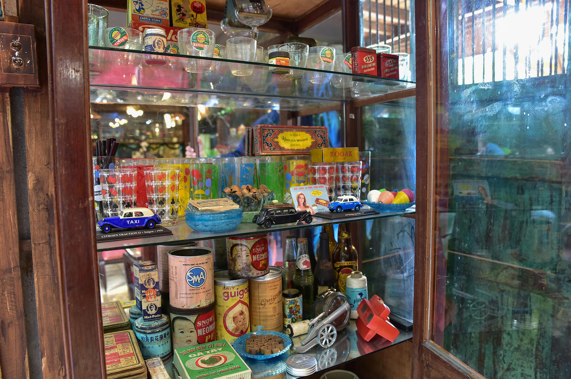 Nhà sưu tập Huỳnh Minh Hiệp sở hữu hàng ngàn món đồ tuy bình dân nhưng hiện nay ít người có được chia sẻ với mọi người tại không gian quán như những chai nước ngọt sản xuất trước năm 75, đèn dầu, gạt tàn, lon nhôm, can nhựa, hộp bánh, thùng bia, sách báo cũ… Theo chủ quán, những chai nước ngọt này đơn giản nhưng rất khó sưu tập, đa phần tìm được ở các tỉnh ngoài TP.HCM.