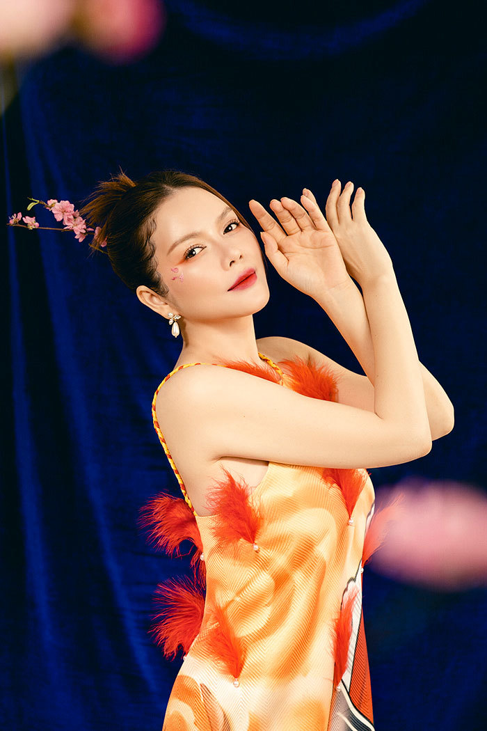 Lý Nhã Kỳ gợi cảm với váy yếm trong ngày đầu xuân. Trong bộ ảnh thời trang Tết, mỹ nhân không tuổi của showbiz Việt chọn những thiết kế áo dài, váy yếm cách điệu, tông màu nổi.
