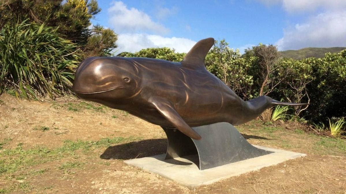Bức tượng vinh danh chú cá heo Pelorus Jack; Nguồn: stuff.co.nz