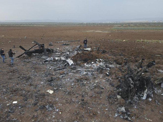 Mảnh vỡ chiếc trực thăng Mỹ ở Afrin, Syria. Ảnh: AP.