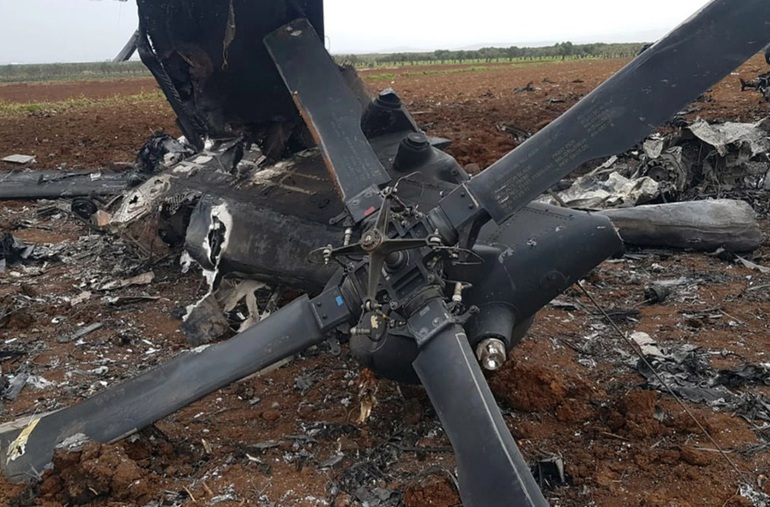 Trực thăng Black Hawk bị phá hủy (Ảnh: Reuters).