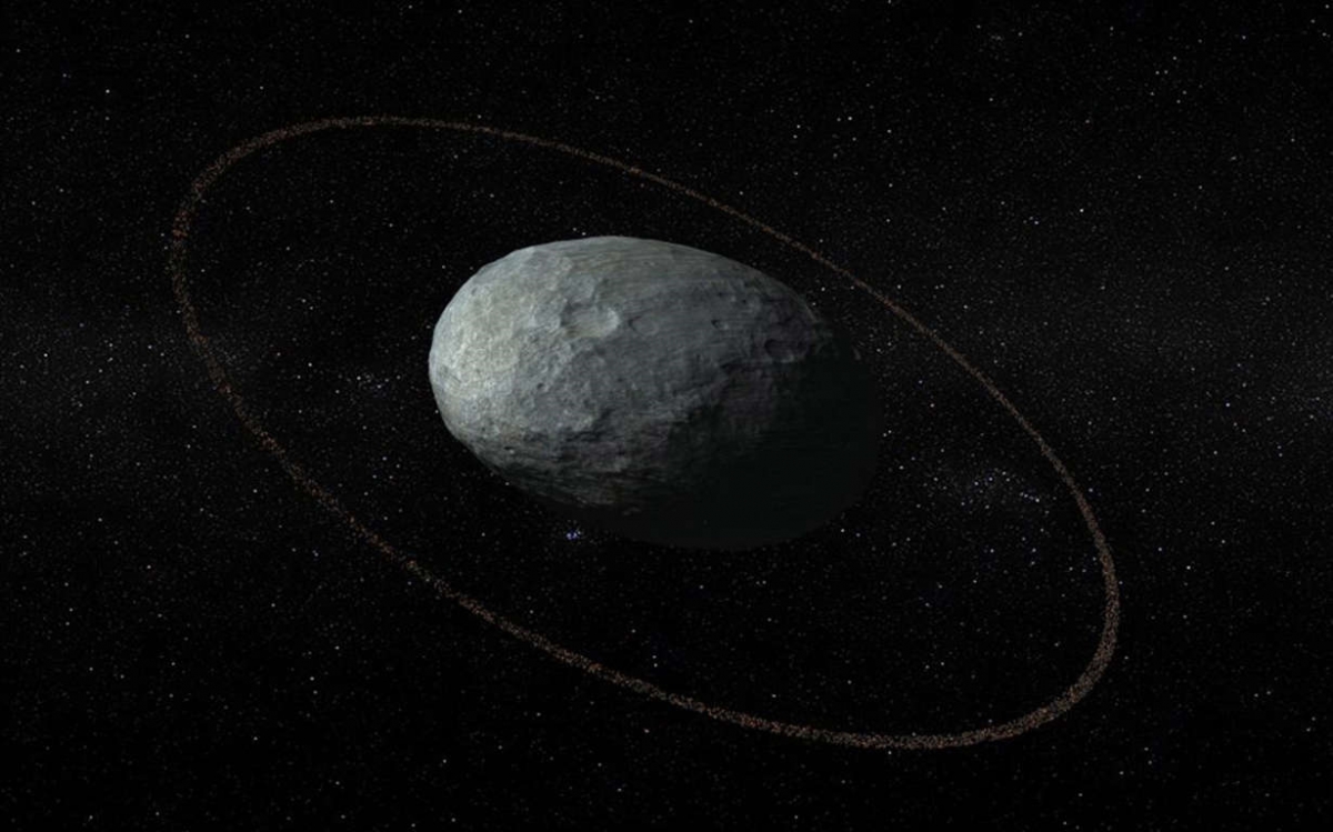 Haumea với những vòng tròn. Hành tinh lùn Haumea, quay quanh Vành đai Kuiper ngoài Sao Hải Vương, là vật thể rất bất thường. Nhưng vào năm 2017, Haumea thậm chí còn kỳ lạ hơn khi các nhà thiên văn quan sát nó di chuyển phía trước một ngôi sao và nhận thấy những vòng tròn cực mỏng quay xung quanh nó. Đây có thể là kết quả của một vụ va chạm trong quá khứ xa xôi.